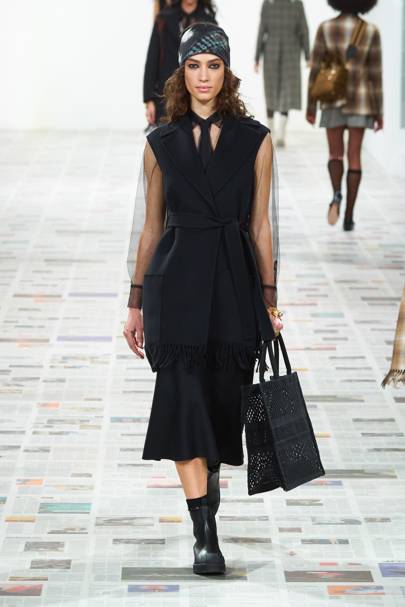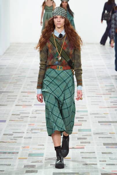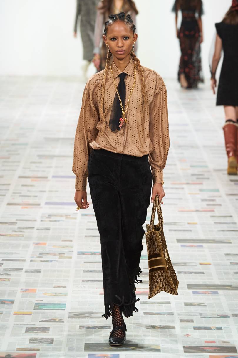There were also little pins added to jacket lapels and jumpers and one read “girls forward” highlighting the label’s individualism as the Natacha Ramsay-Levi told Vogue “Chloé doesn’t stand for any one thing”. She continued “It’s an open identity, something for the woman who wears it to define” emphasising the desirability of the label’s clothes as each piece was not only wearable but naturally distinguishable.